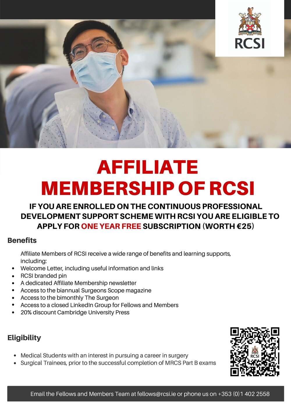 Claim your free one-year Affiliate Membership of RCSI today!