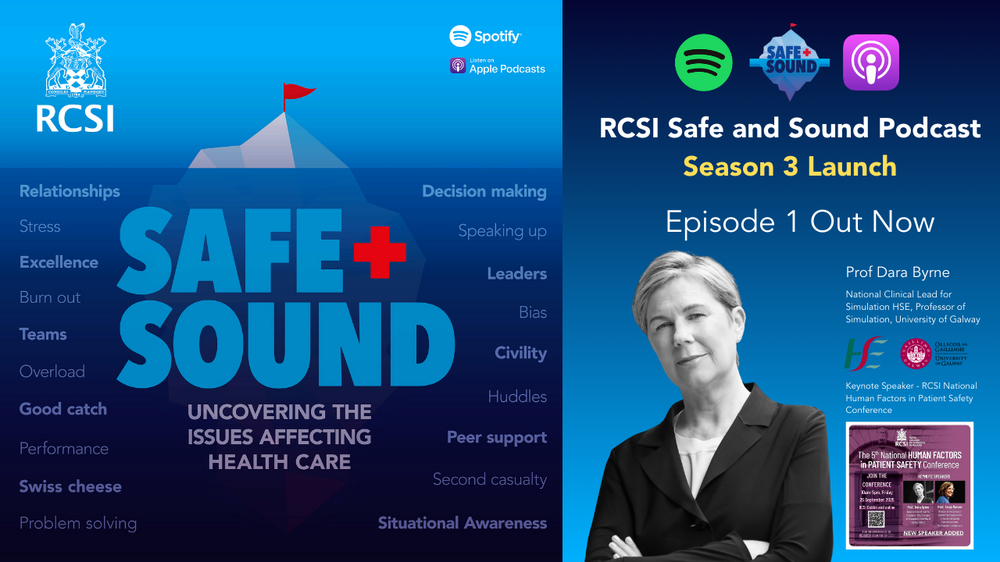 RCSI is delighted to announce that we are back with Season 3 of our Safe and Sound podcast. With a high number of listeners from across different countries and specialties, Season 3 will again provide a spotlight on key pillars within the ecosystem of Human Factors in Patient Safety