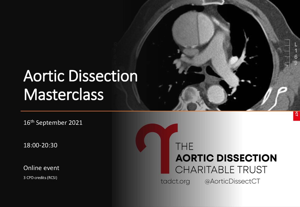 Save the date: Aortic Dissection Masterclass- 16th September 2021 , 3 CPD credits, RegisterHere