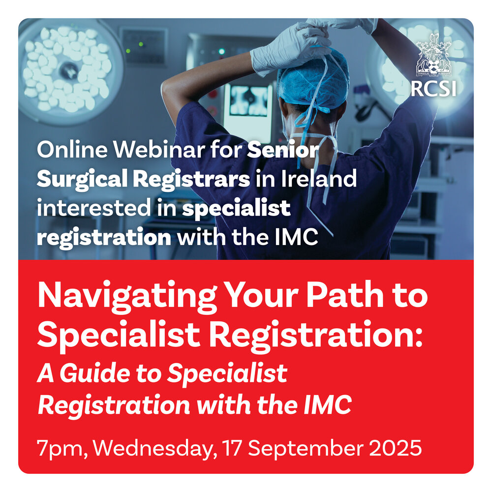 The RCSI is hosting a webinar, on behalf of the Early Careers Surgical Network, which has been designed for NCHDs who are working in Ireland and who are considering applying for registration on the Specialist Division of the Irish Medical Council.