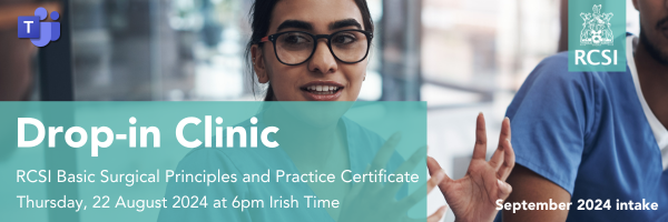 A reminder that our Drop In Clinic for the Basic Surgical Principles and Practice Certificate takes place this evening at 18:00 (Irish Time)