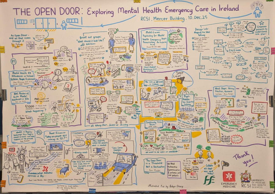On 10 December 2025, the Emergency Medicine Programme (EMP) hosted The Open Door: Exploring Mental Health Emergency Care in Ireland at the RCSI Mercer Building, bringing together a diverse group of leaders and frontline professionals from emergency, mental health, acute hospital, community, research and policy settings. The event created a dynamic and collaborative space to reflect on how Ireland responds to people in mental health crisis and how that response must evolve.