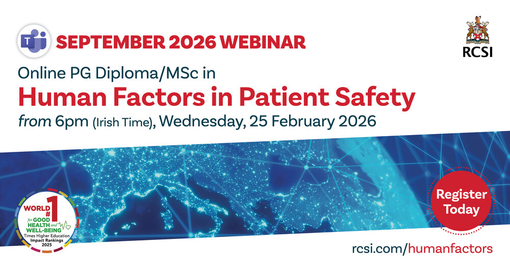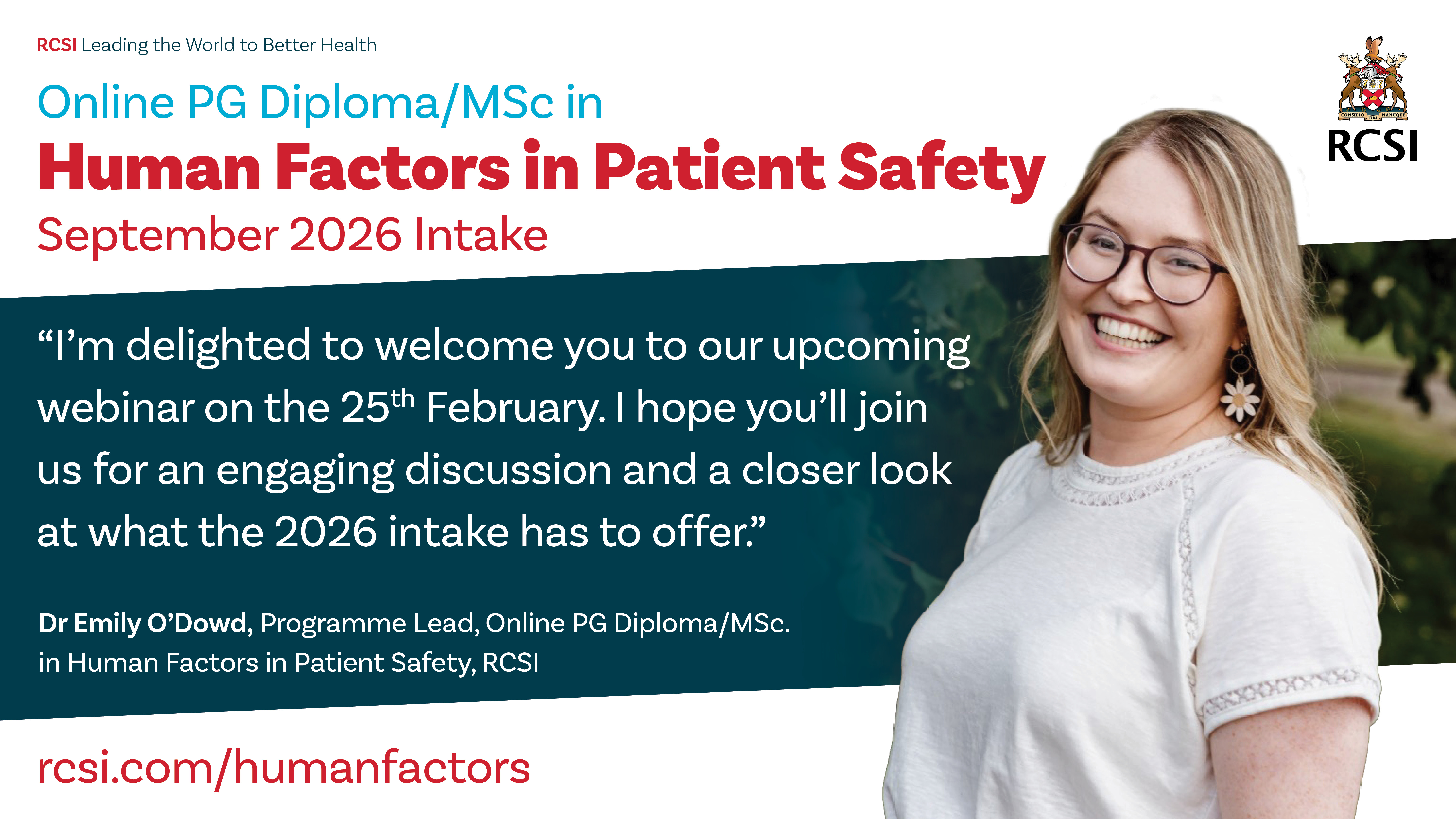 Join us next week on Wednesday, 25 February 2026 from 6:00pm (Irish Time) for our inter-disciplinary and Online PG Diploma in Human Factors in Patient Safety 2026 intake webinar.