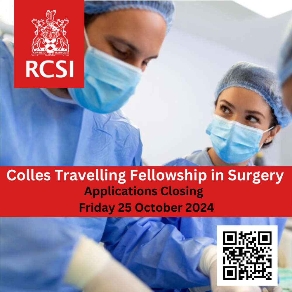 The RCSI Colles Travelling Fellowship in Surgery is an award to promote the acquisition of additional surgical skills and knowledge that will contribute to the advancement of surgical science and practice in Ireland.